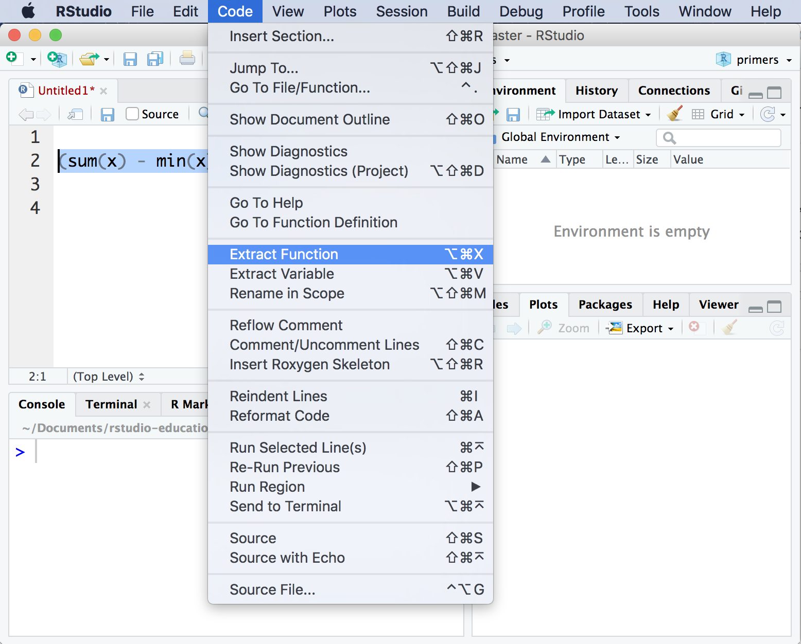 menu bar. RStudio will prompt you to type in a name for the function. It